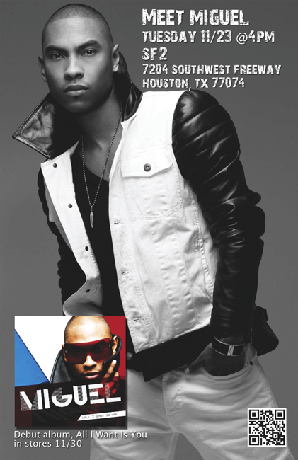 The OMG tour with Usher and Trey Songz comes to Houston Nov.23 and just added is Sony Recording Artist MIGUEL. His single “All I Want Is You” featuring J. Cole is a smash and currently has over 3 million views! The song is hot and so is he! Get up close and personal with MIGUEL at SF2 Southwest. Don’t miss this!